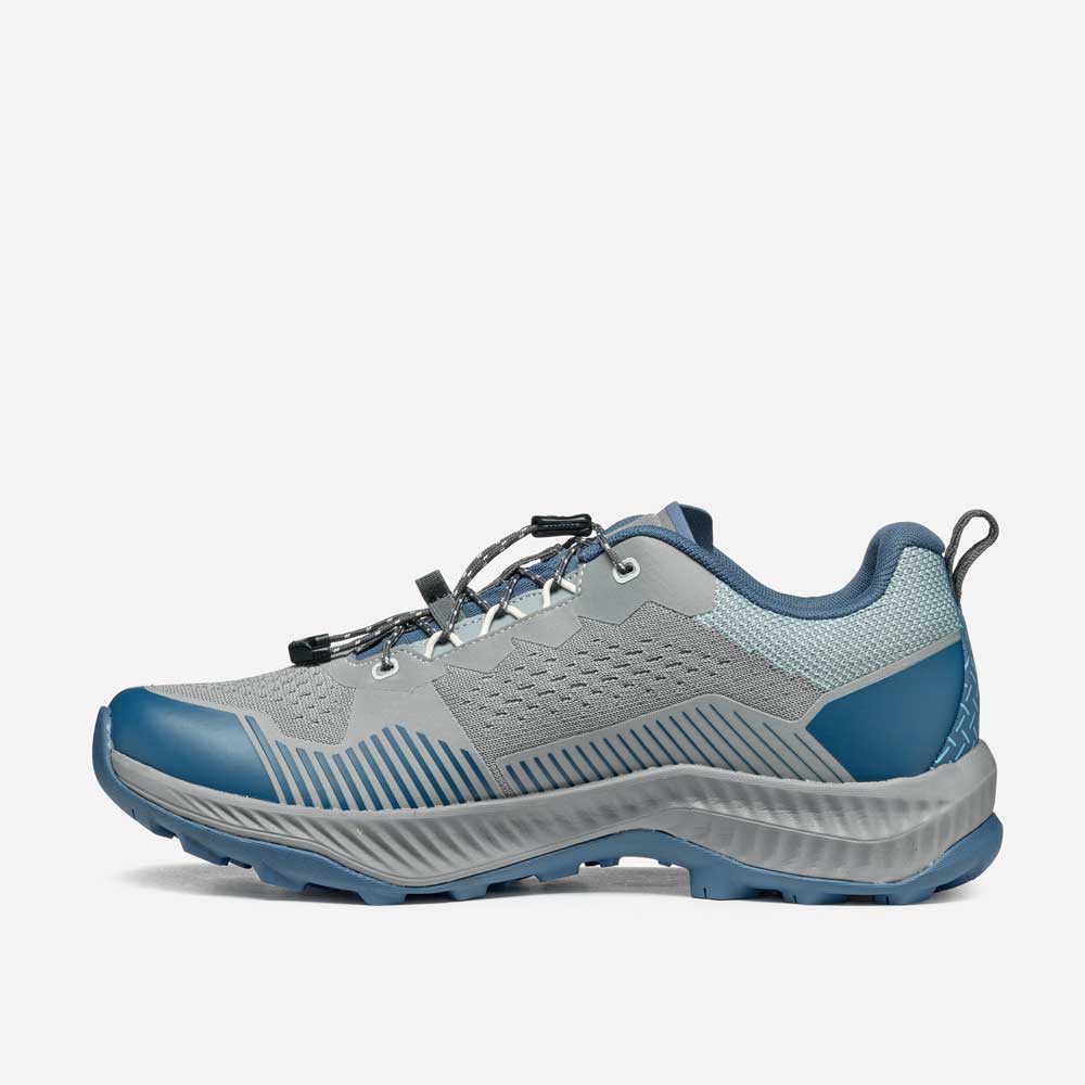 Tomaia in tessuto sintetico, realizzato con PET riciclato. Peso 345 gr. (Mezzo paio in taglia 42).